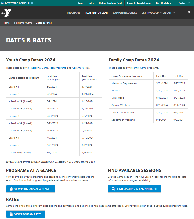 Camp Echo is a YMCA overnight camp in Fremont, MI, that caters to a camper base of over 4,000 each summer. They provide camp experiences for people of all ages across the country and hire summer staff from around the world. The camp has been running for more than 100 years and is one of the oldest YMCA camps in the U.S.
