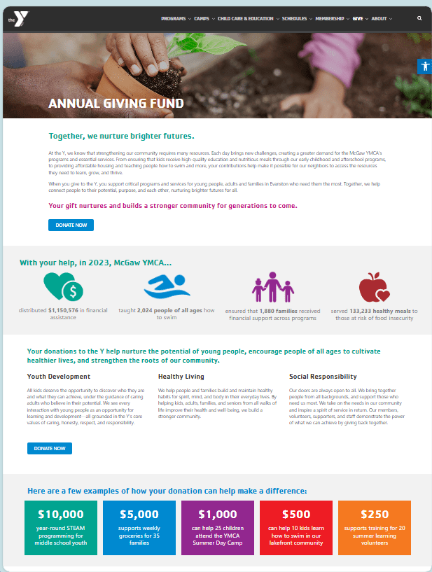 The website redesign exceeded expectations among all surveyed audiences, boosting visits and purchases on the McGaw YMCA website across user groups. The new mobile-first experience is functional, accessible, and supports 32 languages to connect with more prospective members and staff. The design is brand compliant, responsive, and enhances ADA functionality.