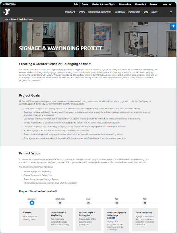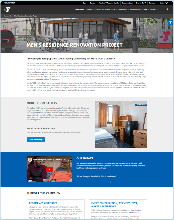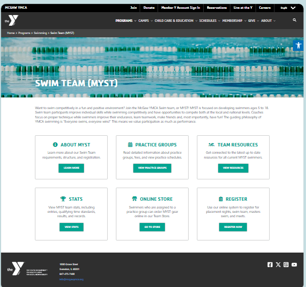 Our vision was to build a website from scratch. To do this, we created project goals and scope, and analyzed similar YMCA websites to determine a structure that effectively communicated the priorities of the McGaw Y while aligning with the “gym and swim” fitness buyer experience. The web design needed to showcase the Y’s vital role in the community while also encouraging users to purchase memberships and register for programs.